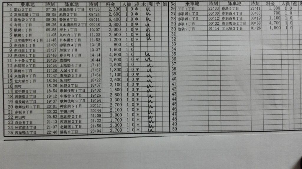 でも、赤羽は居心地がいいです。お客さんも変な人見たことないし、団地に住んでるおばあちゃんがチップをくれます。都心の意味のわからない若者はここにはいません。生活の足として仕事をしている感覚に包まれます。さて、赤羽からUで春日町まで飛ばされたのでそのまま都心で仕事をしていきます。今日は単価は低かったですが、とめどなくUが鳴りました。久し振りに25回以上の仕事をしました。最後は王子や赤羽で手上げのお客さんをピックして高田馬場まで引っ張られますが、一目散に赤羽に戻り30回で帰庫すると決めていたのでさっさと帰りました。夜は赤羽近辺にいれば帰庫オーバーには絶対にならないので安心して仕事できます。