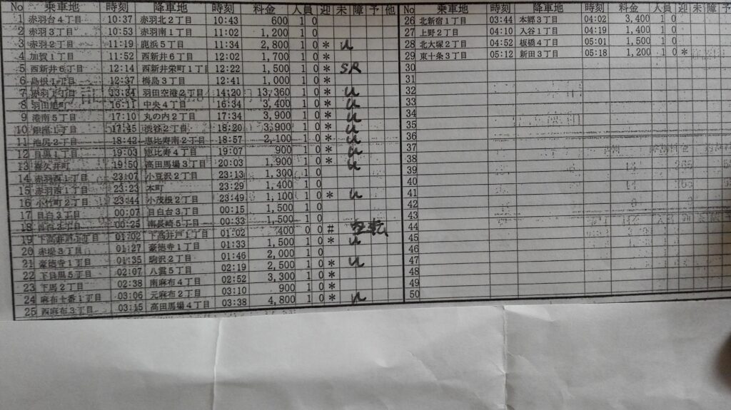 いったん赤羽に戻ろうと海岸通り経由で戻っているとUが鳴ります。都心うろうろモードが始まりました。とりあえず寝たいのでアプリを切って自宅で3時間休憩します。ベッドで寝れるのは疲れが取れますね。クラウンもかなりフラットになるのですがエンジンの振動が気になるんですよね。やはり、本気で休憩するときは家に帰るのが最強です。班長には渋谷と中目の流し方を教えてもらいました。少し癖があるようなので言われたとおり走行してみましたが、すぐにお客さんを見つけることができます。Uも鳴るので併用でいいとのことでした。深夜は流しが主体だよとのことなのでこの方面もそのうちやってみようかと思いますけど、売り上げを気にしてないので2時くらいに退勤できるのが体にもいいかと思いますね。そうそう、環八でハイヤーが横転してましたよ。Zのマークの運転が荒いドライバーが多い会社でした。HNDでよく見るのですが中国人が運転してましたね。中国では中国人ができる仕事に対して就労ビザはおりません。同じルールにすればいいのに日本は平和ボケしてますよね。自分が安全運転してても、こんなのに突っ込まれたら怖いと思います。