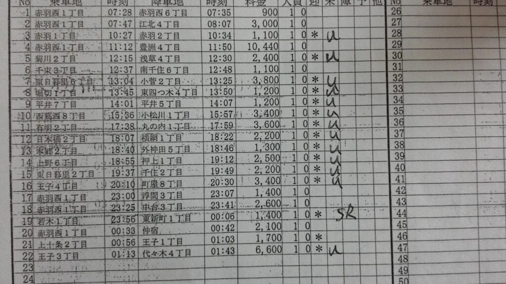 今日久し振りに浅草へも行ったんですが、浅草も外国の街みたいですね。日本人で浅草で遊ぶ人ほとんどいないですよね。人力車がたくさん走っていましたね。家で2時間仮眠してから23時から仕事を再開しました。珍しく夜深い時間でUが鳴り、東十条から幡ヶ谷まででした。スカウトしている人だったのですが、紹介した女性が無断で店の異動をして揉めているとのことでした。こんな夜中に呼び出されて大変な仕事だと思いました。いろいろな仕事があるので、サラリーマン時代には接することのなかった人と話せるのは勉強にもなりますね。