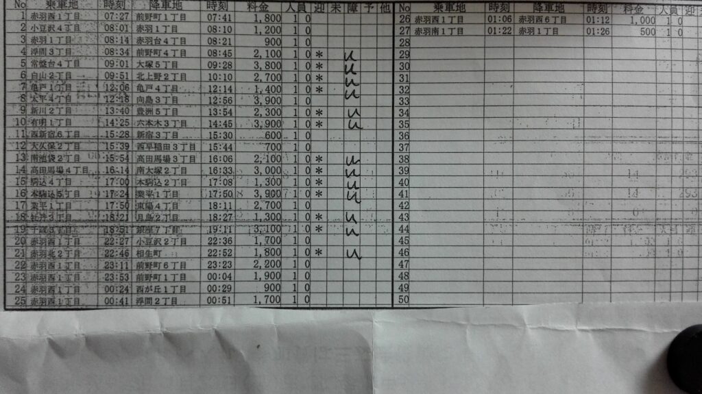 20時~22時半まで家で仮眠して夜はずっと赤羽界隈で仕事ができました。この流れが1番安心できます。今日は単価が4000円以下だけでした。長距離もなかったので体力的にもまったく疲れなかったです。本郷通りで個人タクシーとバイクが事故を起こしていたので、手上げの人を乗せる時は注意しないといけないですね。疲れてくると注意力が低下して普段見えるものも見えなくなってしまうんですよね。日が短いので余計疲れが溜まりますよね。慣れている町を走行できるだけで余裕が生まれるので、夜は赤羽で仕事をしたいです。金曜日にゴルフをするので早めに帰庫して5時まで寝ることにしました。最後のお客さんもワンメータで打ち止めです。1月はあまり夜の街に人がいなかったですね。春にタクシー料金が値上げするみたいなので、また暇になりそうな予感がしますね。