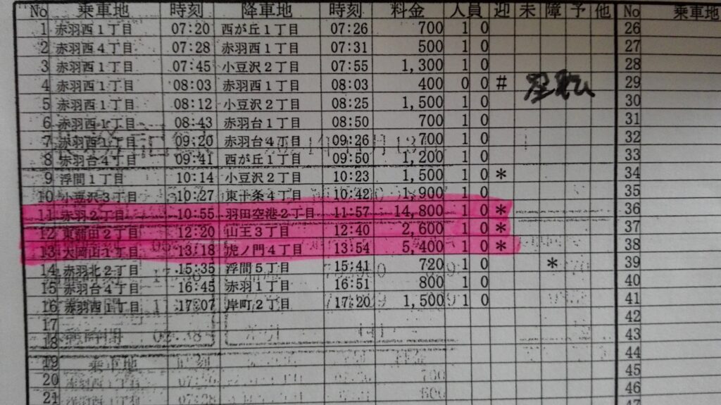 K師匠は今日もお休み。赤羽専用ザクに何が起きたのか!?レポートして行きます。前半はまったりと赤羽西口で仕事します。赤羽東口乗り場にも行ったのですが回転が悪いです。しかも、待機列に並んでしまうと離脱ができない構造。変則的な並び方もぼくにはフィットしません。これからは条件付で先頭が空いていたらつけてみます。でも、K師匠の話では成田空港が出たことあると聞きました。赤羽東口乗り場を離脱した直後にUが鳴りました。迎車場所は東口のビジネスホテル。すると、大柄な外国人3人がたくさんスーツケースを持って待っています。そして、もう1台呼ぼうとしているので、ぼくは英語で積めるか試してみようと提案。後部座席に3人乗ってもらい、助手席に小さいスーツケースを4個格納します。1台で全部詰めたことに大喜びの大男たち。そして、アプリの行き先は近くのホテルでも日暮里でもなくHND T3。ここも以前の会社で事務所があり働いてた私。ちなみに保税地域で働いてたのでそこへはタクシーは入構できません。赤羽から羽田空港までの行きかたはわかります。空港西で降りるのがポイント。初羽田空港でした!TDRも先日行ったので、あとは成田空港だけですね。しかし、Uは凄いです。羽田空港から環七でのんびり赤羽を目指していると、大岡山で若い台湾人が乗車。行き先は虎ノ門ヒルズでした。ここも初めて。ビルの位置関係がよくわからないので復習が必要な場所でした。ちょっとU専用ザクに兵装を交換しようかと本気で考えてしまいます。K師匠に報告の上、お許しが出ればグランドラインを目指すことも検討して行こうかと思った1日でした。